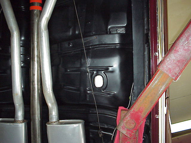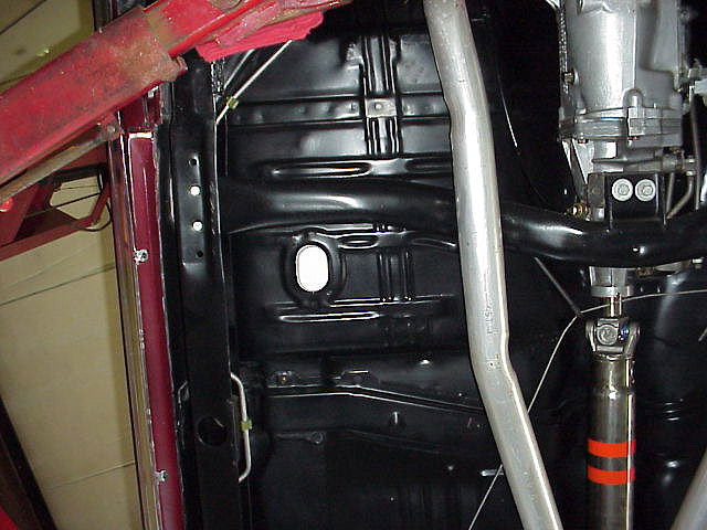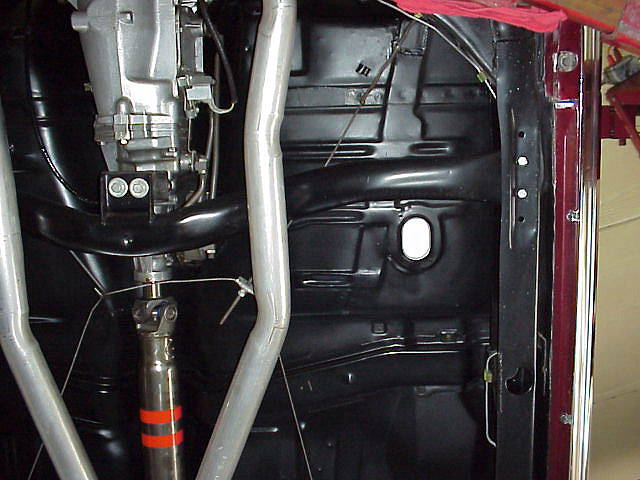 to the two orange stripes visible on the driveshaft near the transmission