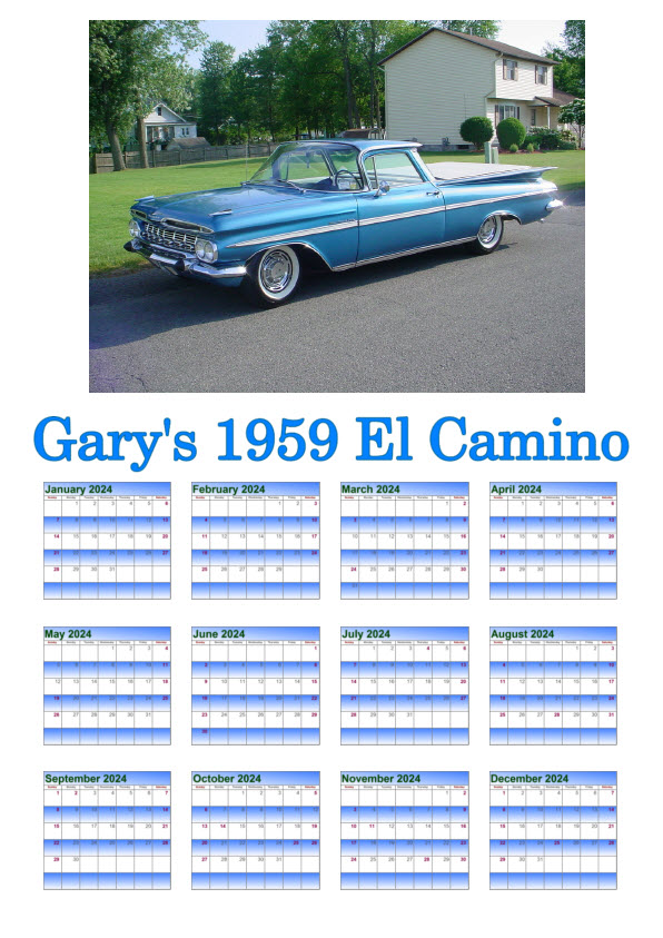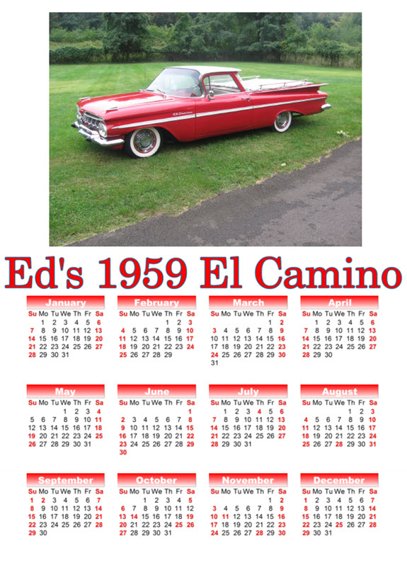 Mention you saw it on CaminoWorld and please give the site credit for the information. Be sure to visit my ChevelleCD site for Chevelle CDs, challenge coins, and other gifts for that El Camino/GMC Sprint fan in your family and my Stickers & Calendars website for custom stickers and calendars with your El Camino/Sprint.