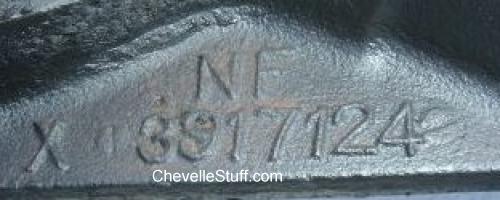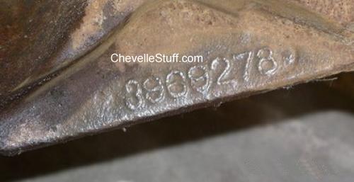 Often anomalies occur. The two photos below are from a 1970 Chevelle with the correct casting number, 3969278NF, but a casting date that appears to be December 22, 1968 (L 22 8). It has been suggested that possibly the casting date was set wrong and it should be L 22 9 for December 22, 1969 as it should be.