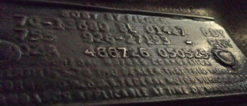 Some plants would typically put a dash, or hyphen, character on the trim tag to denote a special paint car; either just in lieu of the lower body paint color for a convertible or vinyl-top equipped car or in both lower and upper locations for a solid color. Some plants actually used the DuPont mixing formula on the trim tag such as 926-76248, 926-99568, 926-98371, 926-97249, 927-98457, and 927-99918. The first three digit number indicates a non-metallic color (9260 or a metallic color (927). The last five digits are the DuPont mixing formula. One must also remember the color is noted as a base color and not it's 'Sales Name' such as orange vs. Hugger Orange or yellow vs. Daytona Yellow or Sebring Yellow.