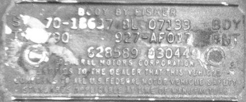 Sample 1970 Baltimore special paint Chevelle. Note the paint codes