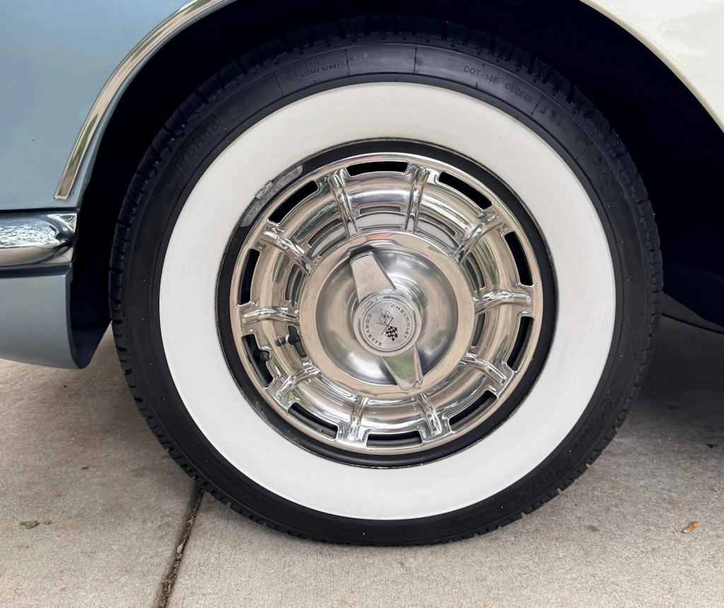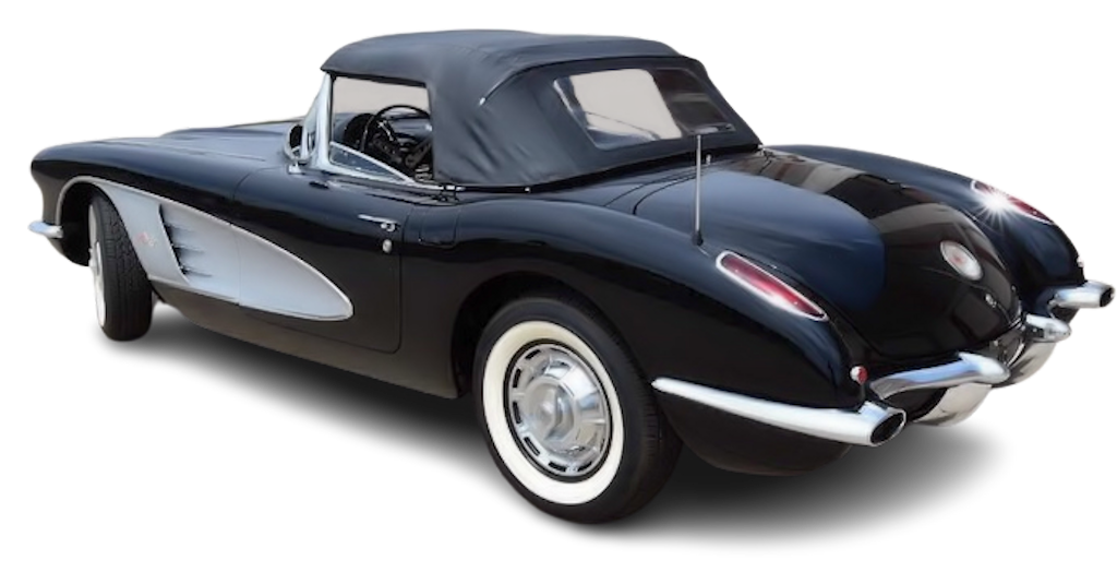 The manual 4-speed shifter now had a reverse lockout mechanism and black interiors were offered. The tachometer, seat belts, outside rear view mirrors, electric clock and dual exhaust were now standard on all 1959 Corvettes. The 1959 model year was the only year a turquoise soft top was offered.