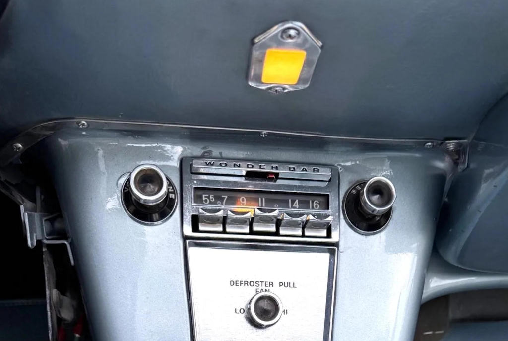 The instrument glass was now convex to help eliminate glare and all tachometers have a redline and safe limit indicators. A small storage bin was added below the Assist Bar and a Corvette script was added to the anodized aluminum area behind the Assist Bar.