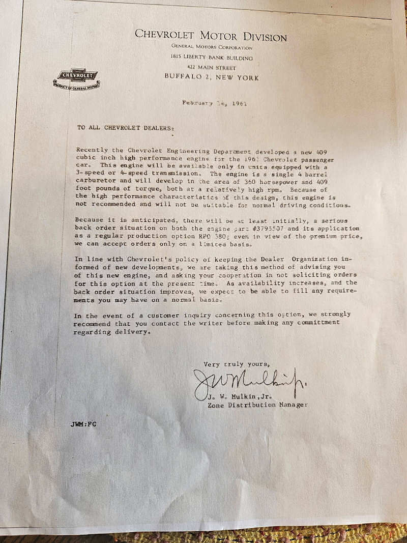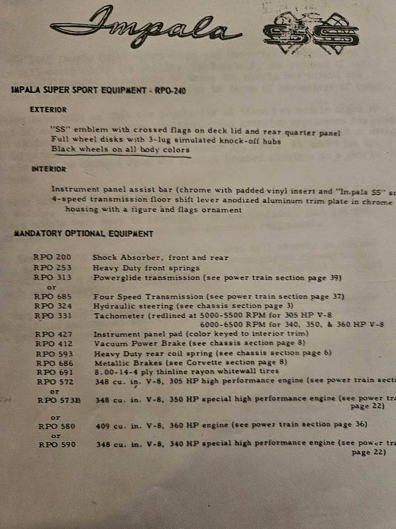 1961 409/SS Equipment