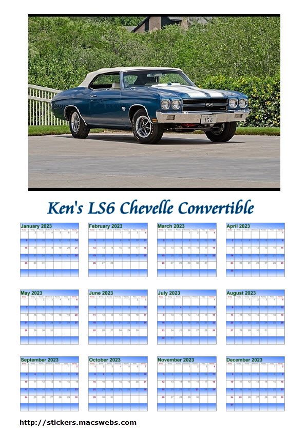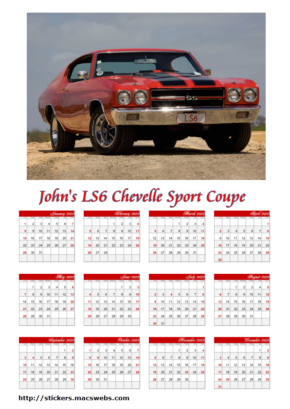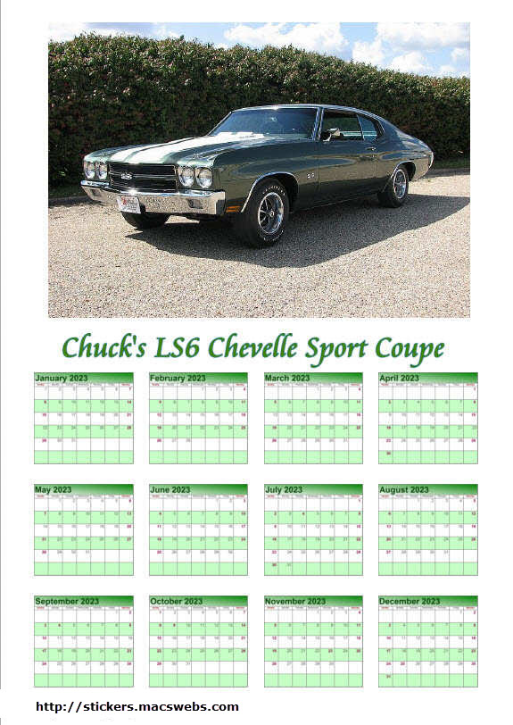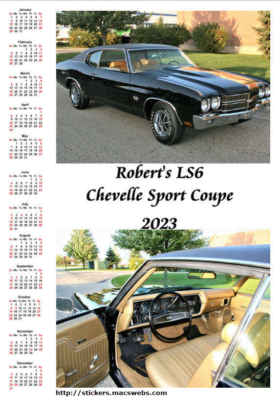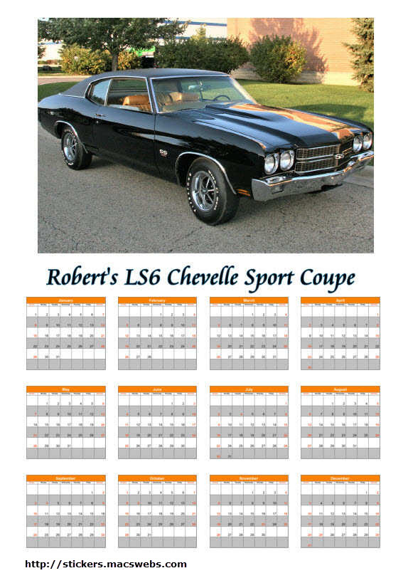 | Custom Calendar of Your LS6 Chevelle/Corvette - 8.5 x 11 glossy stock | ||